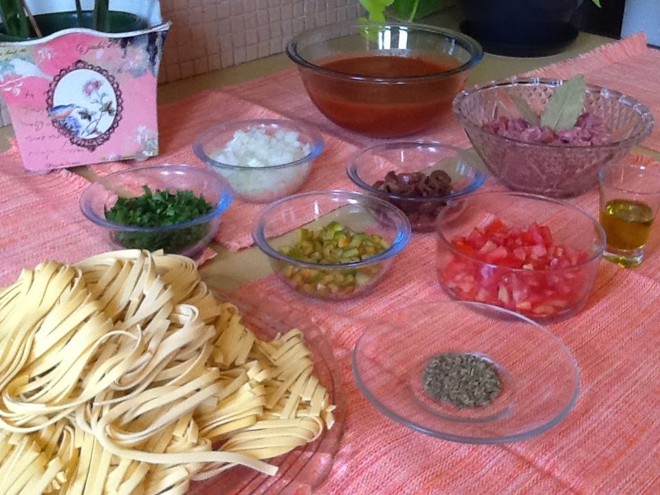 verdes, azeitonas pretas e uma boa porção de salsa fresca.