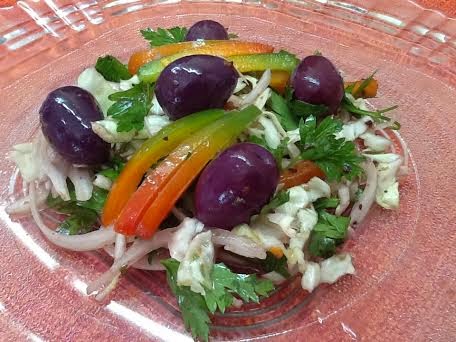 Esta salada deve ser elaborada com algumas horas de antecedência, o repolho não precisa ser cozido.